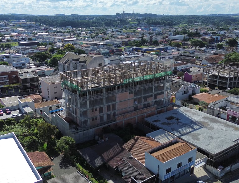 Os imóveis estão localizados em São Mateus do Sul, e estamos com um prédio em andamento na cidade.