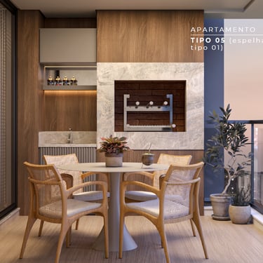Espaço Gourmet: Sacadas amplas com churrasqueira a carvão em todas as unidades, ideal para momentos memoráveis.